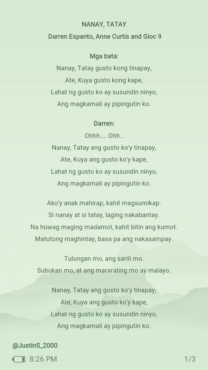 Opm P Pop Rise On Twitter Lyrics Of Nanay Tatay Dahil Paulit Ulit Na Ang Replay Ng Nanay Tatay Sa Playlist Inencode Ko Na Yung Lyrics Para Mas Madali Magmemorize Hahaha Grab Your